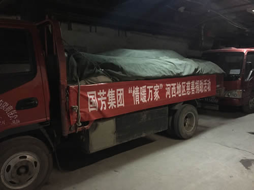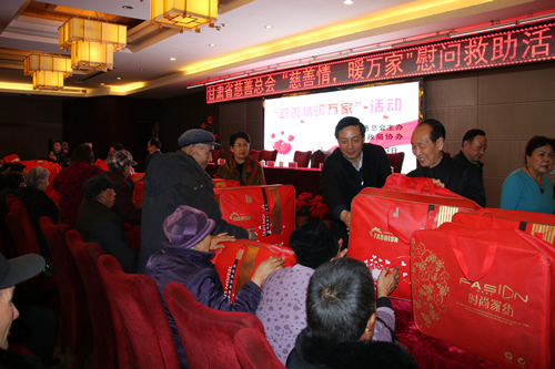 2016年12月12日,甘肅省慈善總會、武威市民政局攜甘肅國芳工貿(集團)股份有限公司共同舉行“情暖萬家”送溫暖活動,將100萬元資金以及價值100萬元的過冬棉服帶給天?h岔口驛敬老院的老人們。當日下午,甘肅省慈善總會與甘肅國芳工貿(集團)股份有限公司的各位愛心人士又馬不停蹄的趕赴張掖為當?shù)氐墓鹿牙先藥チ?60萬元資金以及價值250余萬元的過冬衣物及被褥。此次活動傳導社會幫扶、精準扶貧精神的同時也默默為社會傳導著一份正能量。