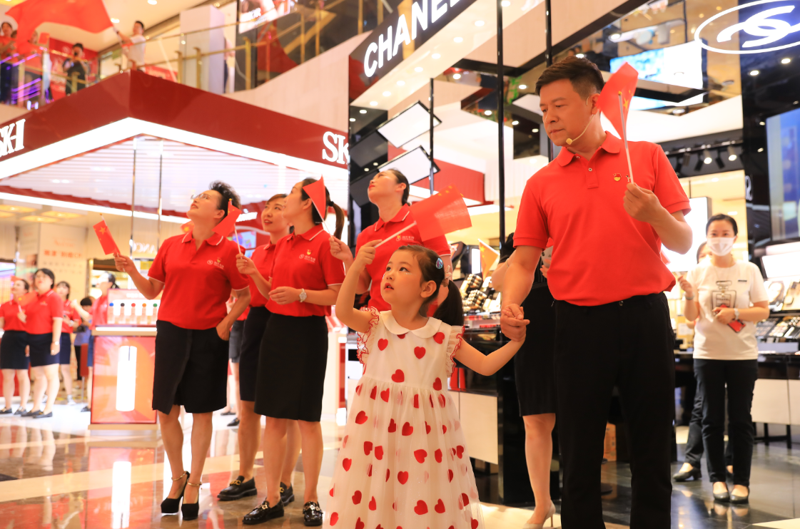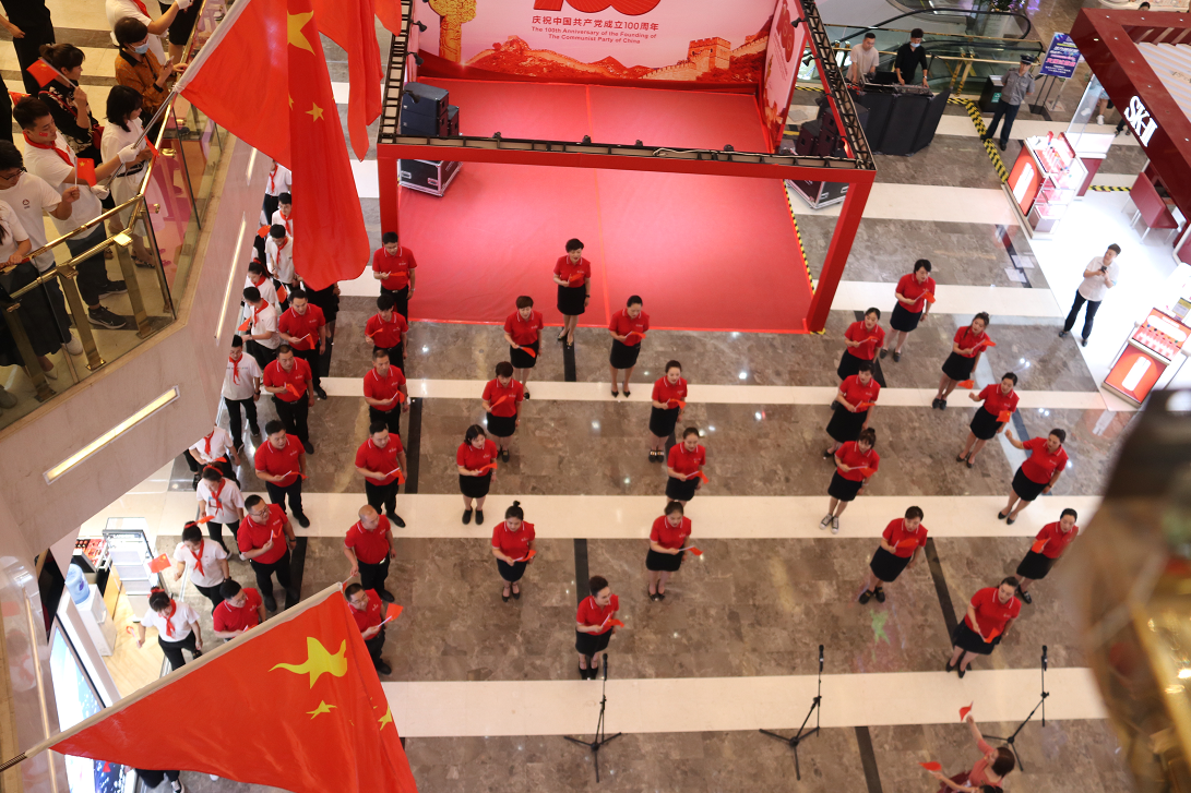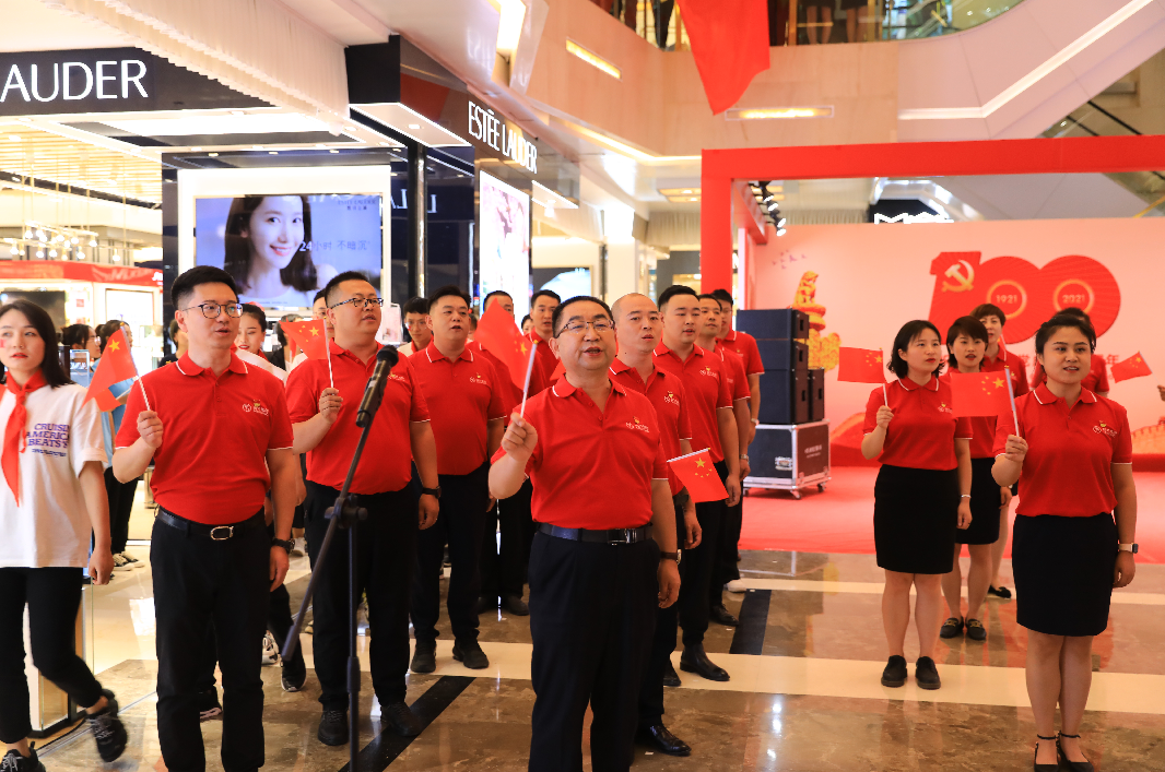 下午14時,國芳集團慶祝中國共產(chǎn)黨成立100周年紅歌快閃活動在蘭州國芳百貨廣場店一樓中廳隆重舉行。國芳集團全體黨員及員工代表參與其中,大家用歌聲表達(dá)對黨的無限忠誠和美好祝福。