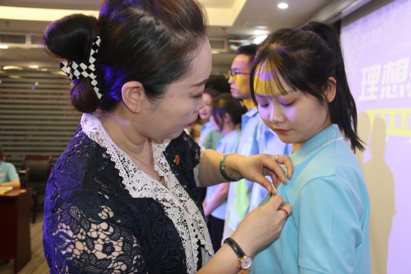 在入職儀式進(jìn)入尾聲之際,進(jìn)行授牌及贈(zèng)書儀式,由國(guó)芳集團(tuán)各位領(lǐng)導(dǎo)為新一屆管理培訓(xùn)生佩戴工卡并合影留念,從此刻起,數(shù)十名管理培訓(xùn)生便正式成為了國(guó)芳集團(tuán)中的一員。