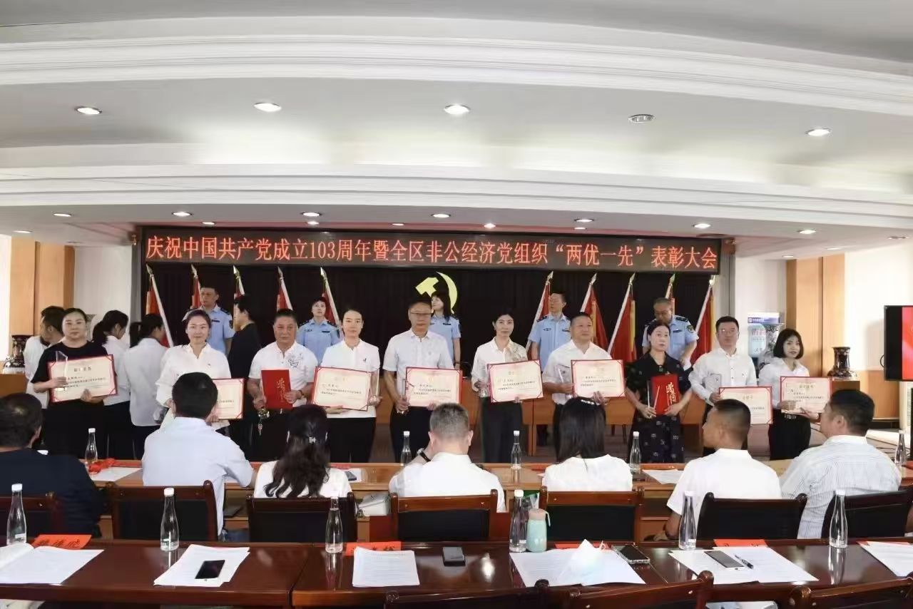 2024 年7月9日上午,“中共蘭州市城關(guān)區(qū)非公有制經(jīng)濟組織委員會紀(jì)念建黨 103 周年暨兩優(yōu)一先表彰大會”在城關(guān)區(qū)市場監(jiān)督管理局十樓隆重召開。